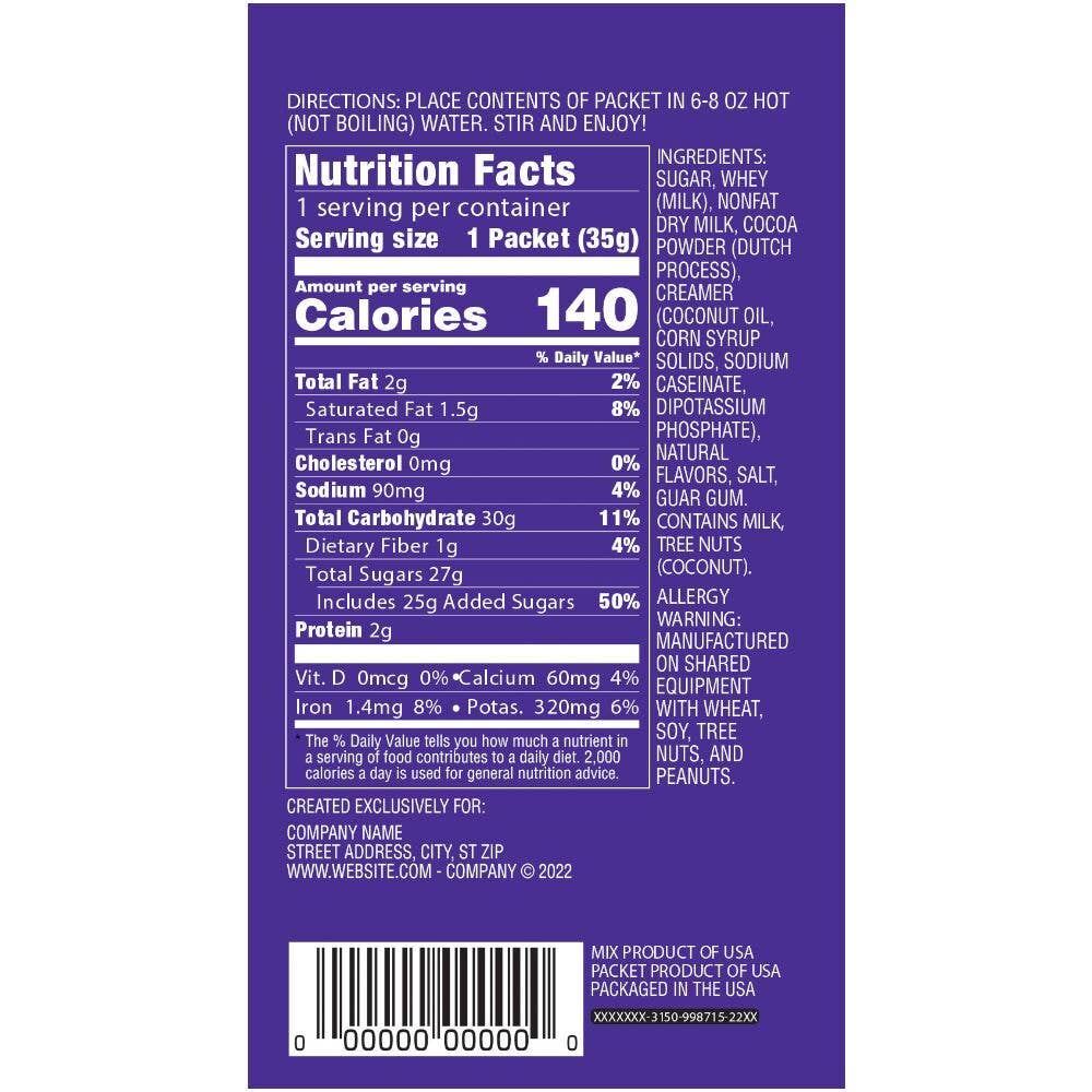 These 1.25oz. single serve packets are perfect for gift giving or when you are on the go, simply mix with hot water or milk for semi-sweet, delicious dark chocolate cocoa. Mmm, mmm, mmmm! Oh and don't forget the marshmallows!!