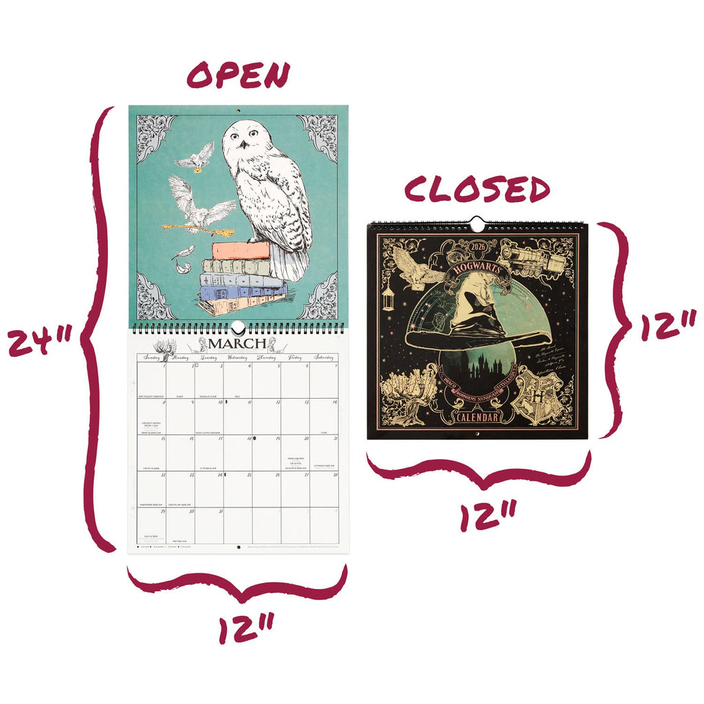 - Features 12 unique monthly spreads with enchanting Harry Potter artwork alongside a spacious calendar layout that