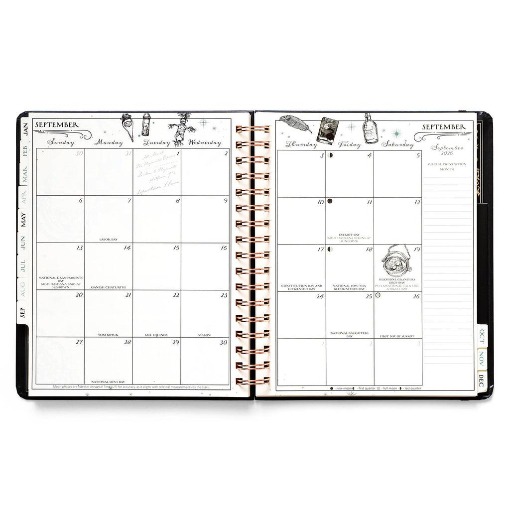 Features 164 pages, a foil-detailed hardback cover, rose gold spiral binding, elastic strap, storage pocket, and ruler bookmark. Don’t miss the matching 2026 Wall Calendar for even more Wizarding World wonder!