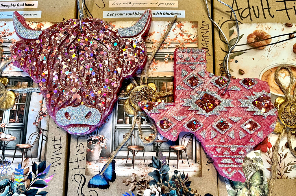 Rustic Charm meets sweet scent in the cutest way possible. Our Highland Cow Car Freshie brings cozy vibes to your ride with an adorable fuzzy-faced design and long-lasting fragrance. Whether you're a country soul or just love a good cow with bangs, this freshie is sure moo-ve your mood every time you hit the road.